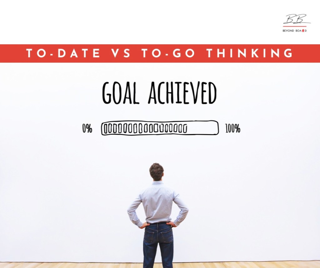 To-go Thinking คือการคิดว่า เหลืออีกเท่าไหร่ถึงจะบรรลุเป้าหมาย เช่น ตอนนี้เหลืออีก 60% กว่าจะเสร็จโปรเจค